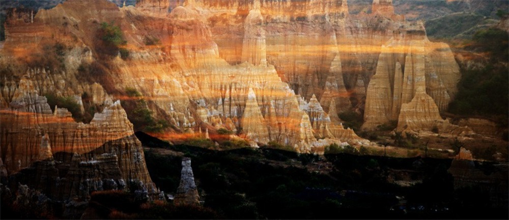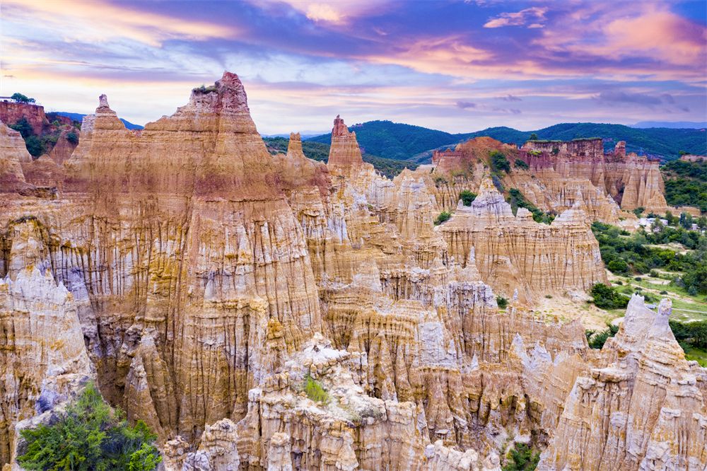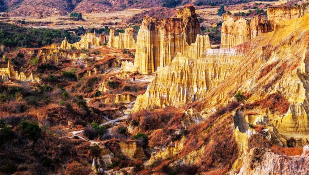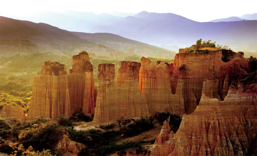 土林群色彩浓烈、姿态万千,既有壁垒森严的碉楼,也有古堡般巍峨的宫殿群……万象天成、不可尽数,如坠入童话国度,又如穿行梦幻迷宫。