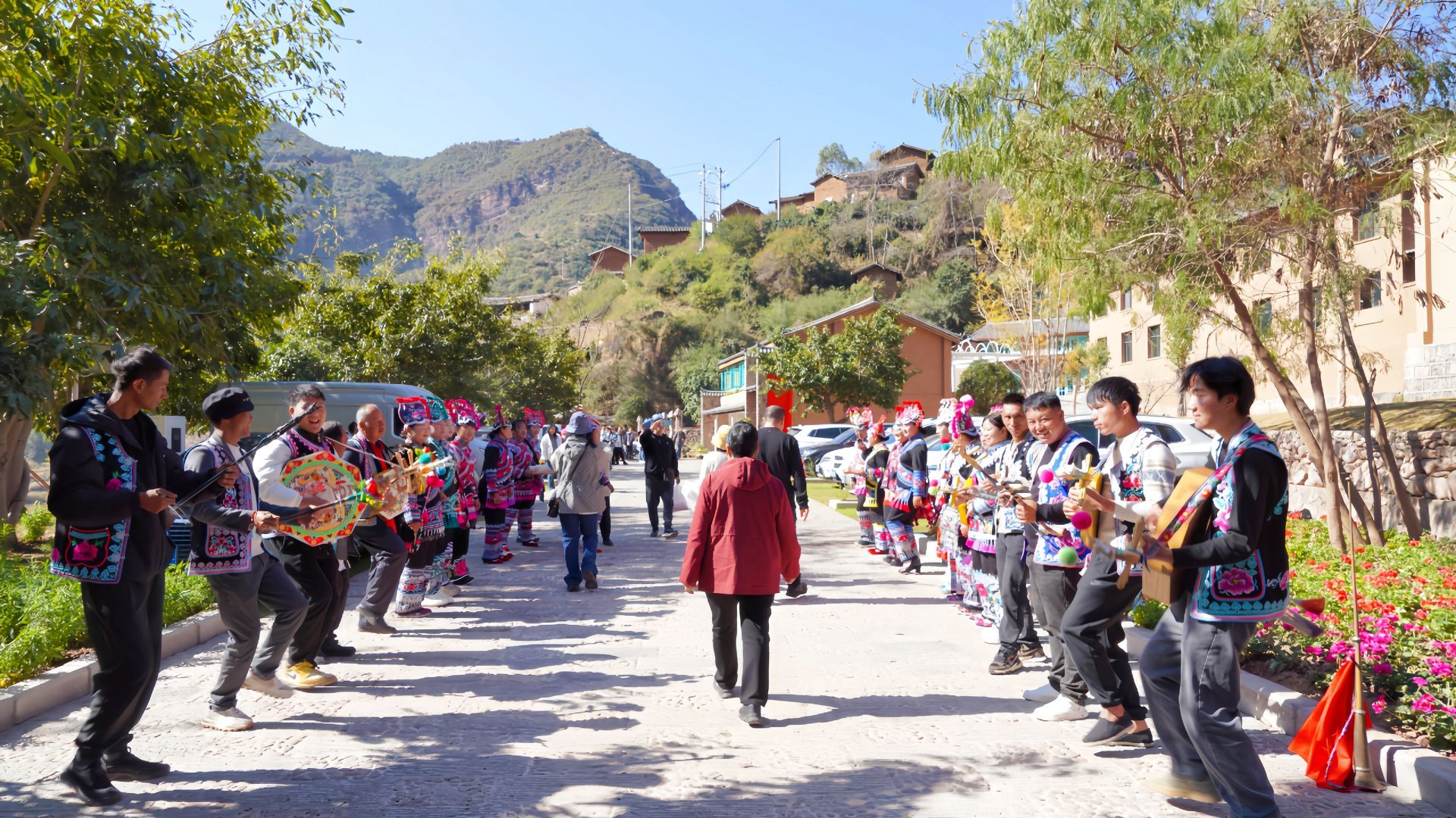 走进外普拉村,春的生机与年的喜庆在古村中完美交融。身着艳丽彝族服装的村民们载歌载舞,悠扬的彝歌、轻快的舞步交织在一起,往来宾客漫步青石板古巷,观赏错落有致的彝族民居,眺望山间漫山遍野的绿意,真切感受千年古村焕新后的蓬勃生机。