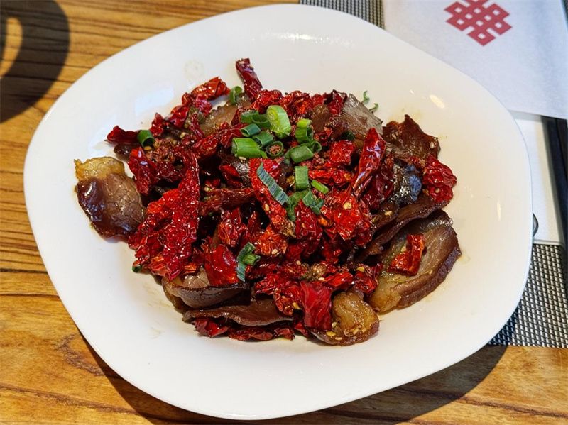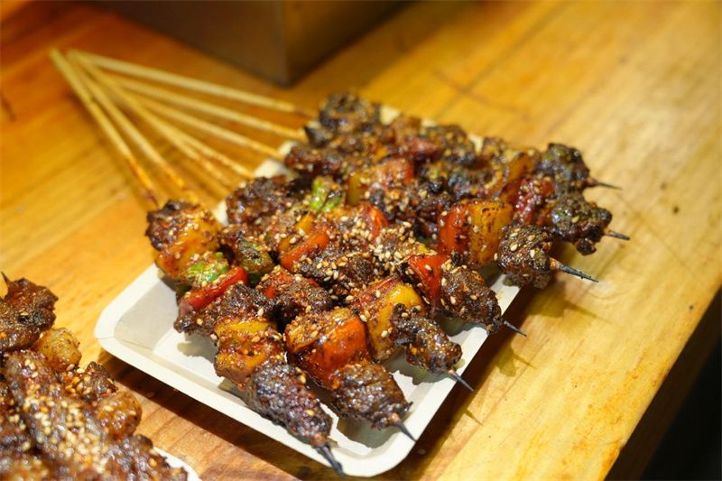 当晚的直播带领观众展开了一场沉浸式的寻味之旅。跟随镜头,观众在百年藏式老宅中“云”品尝了风味藏餐:薄荷花椒的辛香与牦牛肉碰撞出独特风味,干炒牛干巴越嚼越鲜,尼西黑脚土鸡和香格里拉松茸小火慢炖出山野本味,加入本地藏族群众自制奶渣制作而成的奶渣巴斯克酸甜清新……在路边小店,鲜嫩多汁的牦牛肉串在烤架上嗞嗞作响,香味隔着一条巷子都能闻到;非遗手打酥油茶则融合了新中式的品茗之道,游客不仅可以体验手打全过程,还可以端一杯茶香浓郁、酥油香醇的酥油茶夜游古城……这条精心设计的路线,全方位展现了独克宗古城“一店一味”的夜间经济活力,让屏幕前的网友仿佛身临其境,感受香格里拉夜晚最诱人的温度。