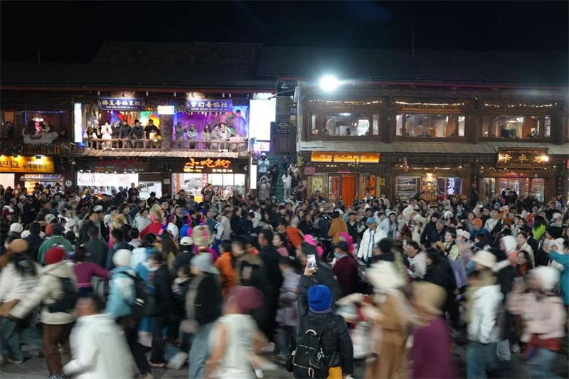 去年8月,云南省出台《关于进一步推动云南夜间文旅经济高质量发展的若干措施》,为全省夜经济提质升级注入强劲动力。在此背景下,独克宗古城凭借其独特的文化魅力,将“世界的香格里拉”这一IP转化为夜间经济新动能。从每晚月光广场上各族群众与游客携手共跳的锅庄舞、藏族弦子舞、纳西族白沙细乐等跨民族文艺表演,到齐聚各民族非遗技艺、吸引超50万人打卡的“民族团结艺术市集”,古城成功构建了“可观赏、可参与、可品味”的全感官夜间消费场景。