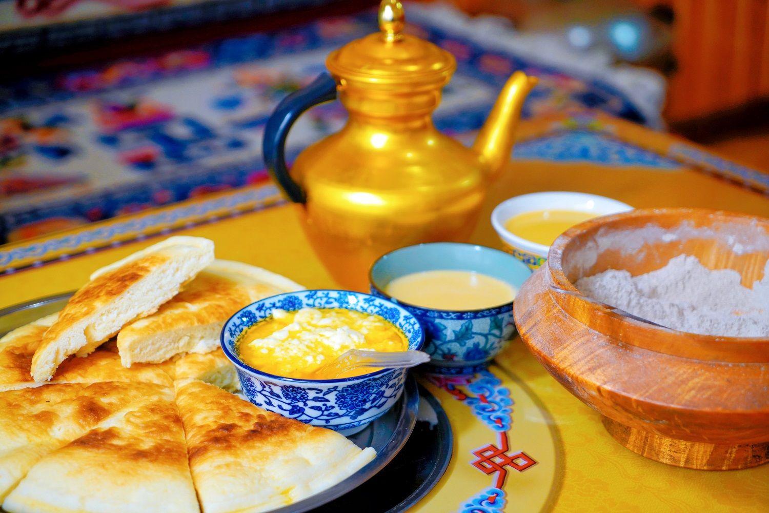 午餐在大羊场农家乐解锁地道风味,漆油鸡火锅咕嘟沸腾,猪脚干巴菜配一壶滚烫的酥油茶,是高原冬日最妥帖的慰藉。