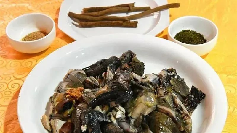 选林间放养的土鸡,连同一碗鸡血糯米同煮,待筷子能轻轻戳透鸡肉,便捞出、沥干、斩块。将褐色的香疙瘩粉细细捻入白肉,没有浓油赤酱,鸡肉原本的鲜甜被全然唤醒;香疙瘩的凉意渗进肌理,腥气化为草木的清朗。入口是弹韧的,嚼着嚼着,竟嚼出了山风穿林的味道。