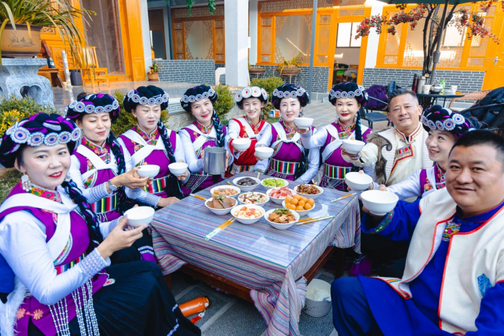 在宁蒗县的泸沽湖畔,摩梭人的年味始于祖母屋的第一缕炊烟。除夕之日,松枝在火塘中噼啪作响,家家户户在门窗和农具上贴满彩纸,祈愿万物有灵、五谷丰登。丰盛的年夜饭桌上,猪膘肉、鲜鱼与公鸡肉摆满全席,寓意生活富足;饭后,全家人为长辈洗脚的温情仪式,则传递着代代相传的孝道与祝福。