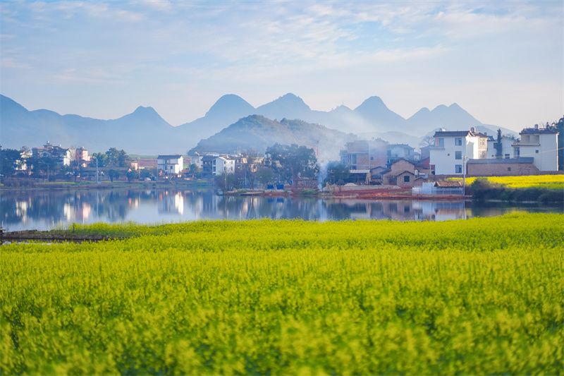 春日的气息,正从文山普者黑的水底缓缓升起。它穿过小白山晨雾缥缈的油菜花田,路过布宜村刚修缮完成的百年老宅,拂过阿诺村晾在竹竿上的蓝染布料,最终停在文山大地上一个又一个亮着暖光的窗前。