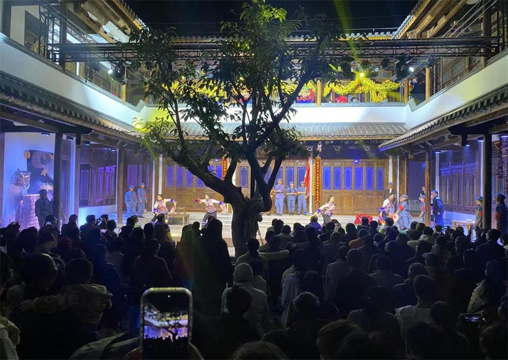 2月17日晚,姚安县光禄古镇的百年庭院化身为沉浸式剧场,原创红色庭院剧《赤子之心》激情上演,吸引了众多外地游客和当地群众围观。