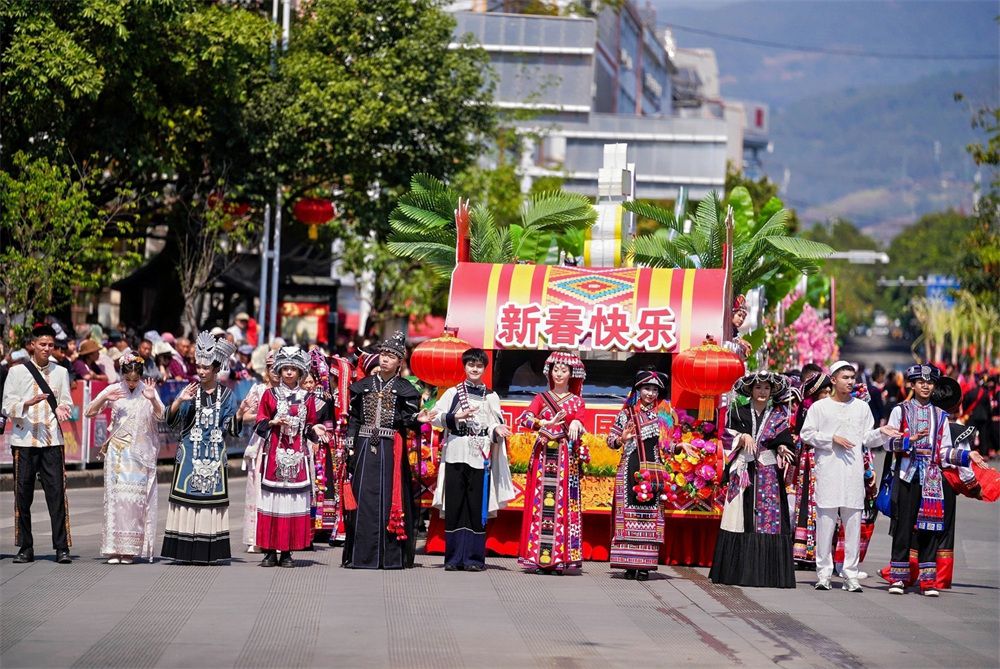 当悠扬的芦笙调唤醒澜沧江畔的晨曦,云南省普洱市澜沧拉祜族自治县迎来了一年中最盛大的时刻。2月19日,农历正月初三,澜沧县城化身为歌舞的海洋。数万名身着节日盛装的各族群众与海内外游客齐聚一堂,举行盛大的“扩塔”(春节)民俗巡游活动。在欢腾的芦笙舞步与此起彼伏的欢呼声中,一幅各民族交往交流交融、铸牢中华民族共同体意识的生动画卷徐徐展开,向世界展示着“有一种叫云南的生活”的独特魅力。