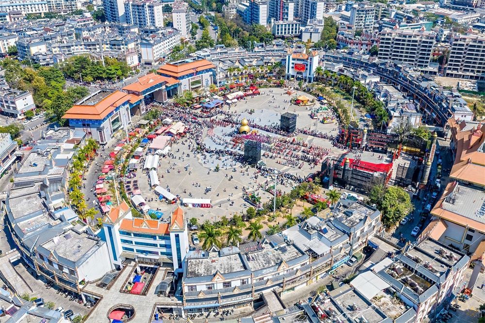 夜幕降临,庆祝活动的高潮转移到了民族团结进步广场(葫芦广场)。在这里,“笙歌贺岁庆团圆”民族民间歌舞晚会精彩上演,随后是通宵达旦的篝火打跳。熊熊燃烧的篝火映照着一张张笑脸,数万人围成一个个巨大的同心圆,芦笙声、象脚鼓声、欢笑声交织成一曲新时代的边疆颂歌。