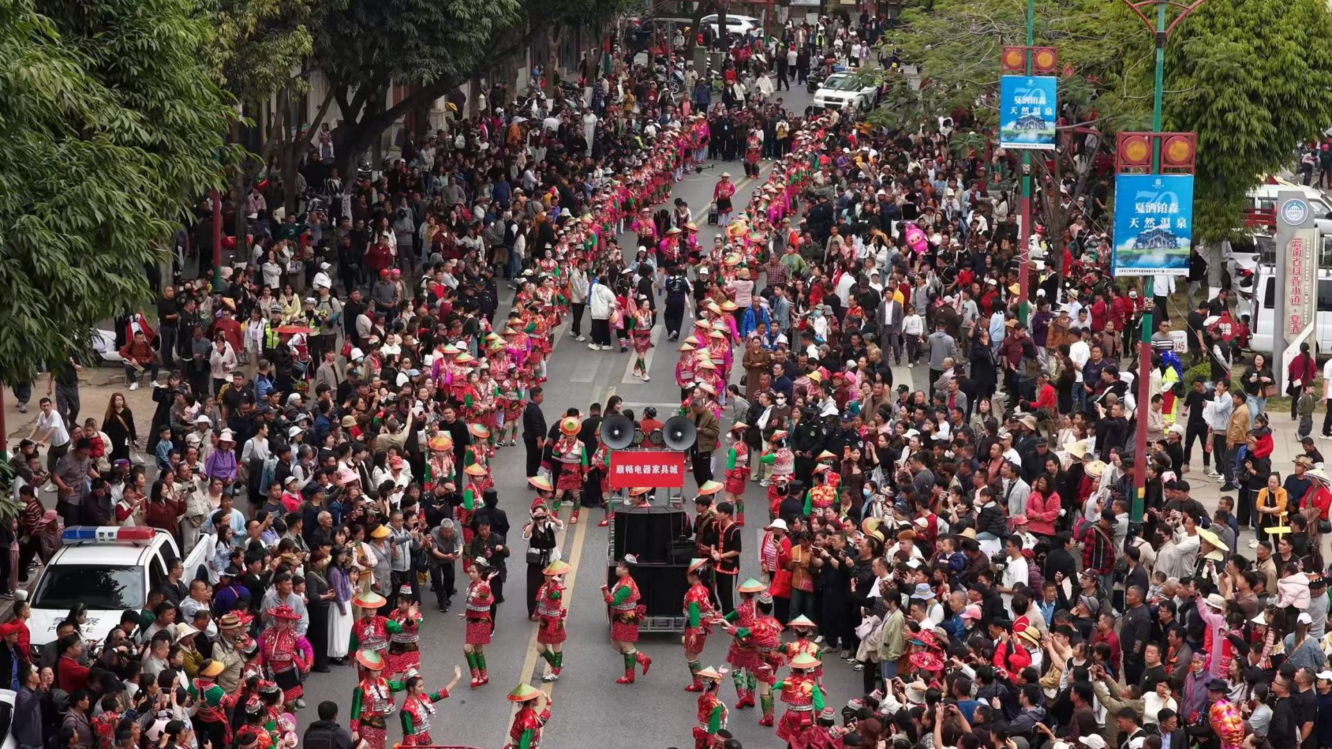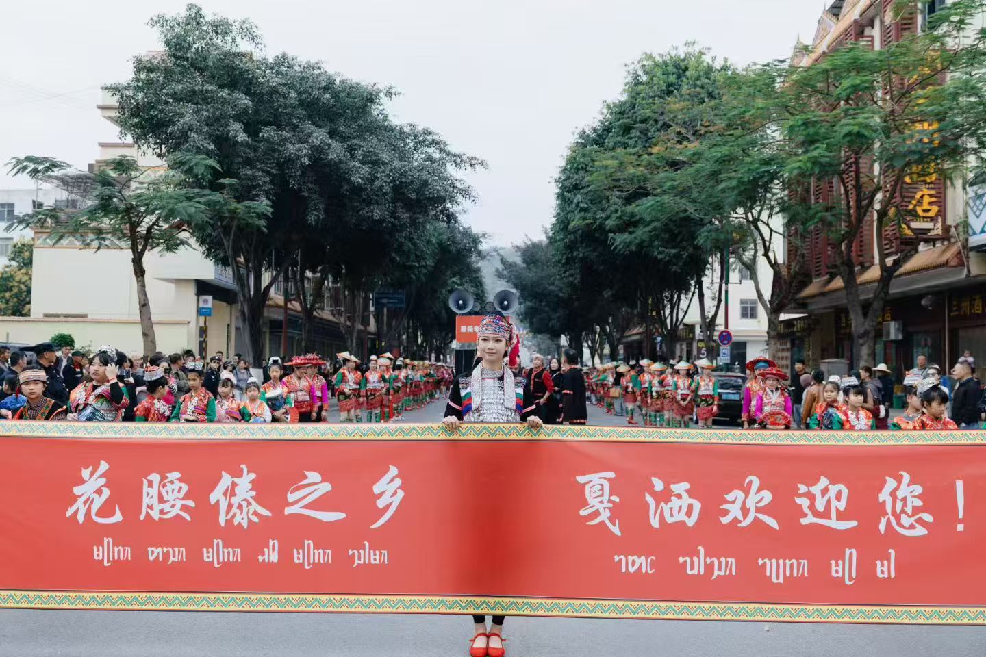 上午11时,伴随着悠扬的民族旋律,花街巡游活动正式拉开帷幕。身着节日盛装的花腰傣“小卜少”们款款走来,色彩艳丽、造型独特的服饰成为街头最亮眼的风景,生动演绎了“满城尽是花腰傣”的壮观场面。沿途游客纷纷驻足,争相拍照留念,定格下这独具魅力的民族风情画卷。