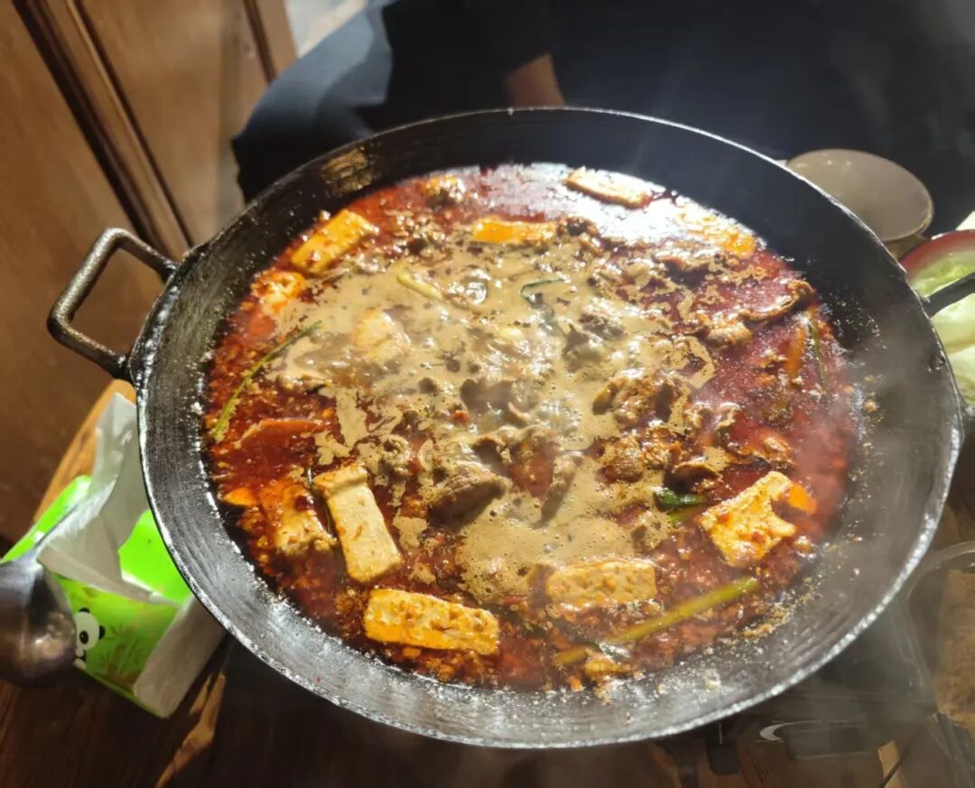臭豆腐牛肉火锅则是楚雄独有的风味碰撞,牛骨高汤熬制的锅底,加入油炸后的臭豆腐慢煮,待汤底融入独特的发酵香气,下入腌好的牛肉片与耐煮蔬菜,牛肉吸饱汤汁鲜滑多汁,越煮越香浓。