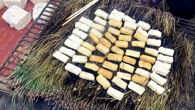 楚雄的滋味,是热烈又独特的滇中风情,每一口都能让人直呼“真香”。作为州级非物质文化遗产的琅井松毛烤豆腐,以石磨手工豆腐为原料,铺在青松毛上炭火烘烤,烤至外焦里嫩后蘸上特制蘸水,豆腐香、松毛香与辣味交织,回味无穷。