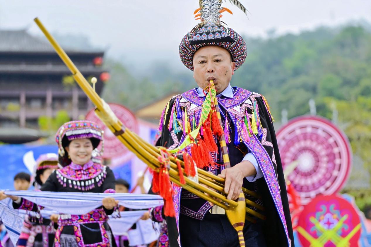 2月19日,花杆立苗乡,芦笙迎远客。屏边县2026年苗族花山节在滴水苗城苗历广场热闹启幕,八方游客与当地苗族群众欢聚一堂,载歌载舞,共庆新春,在浓郁的民族风情里感受中华优秀传统文化的独特魅力。