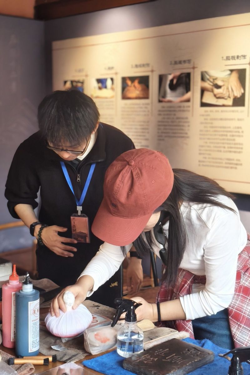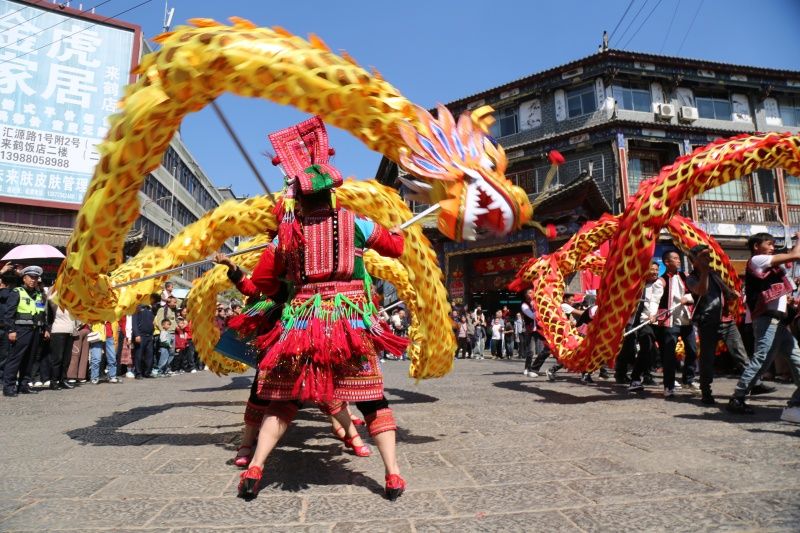在石屏古城,每天的民俗巡演是最值得期待的风景。锣鼓喧天中,舞狮、舞龙队伍穿梭街巷,为人们送上新春祝福。县博物馆、图书馆、袁嘉谷故居里,猜灯谜、拓片体验、线装书制作等传统活动吸引了众多游客,大家在动手体验中感受传统文化的魅力与年味的绵长。
