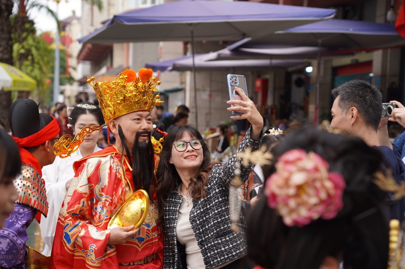 大年初五迎财神!河口县“迎财神”巡游队伍穿行大街小巷,所到之处人潮涌动、笑语盈盈,财气与福气一路播撒,游客们纷纷接福纳祥,祈愿新的一年好运连连。