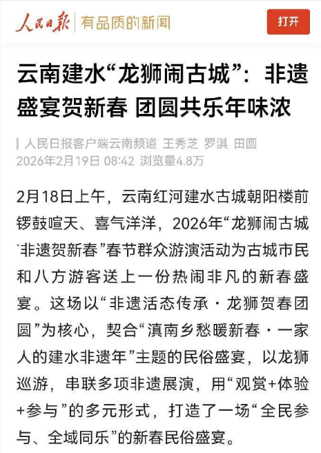 “来红河 红红火火过大年”不止是一句口号,红河州以丰富的文旅产品、亮眼的市场数据、暖心的服务保障,交出了一份优异的新春文旅答卷。