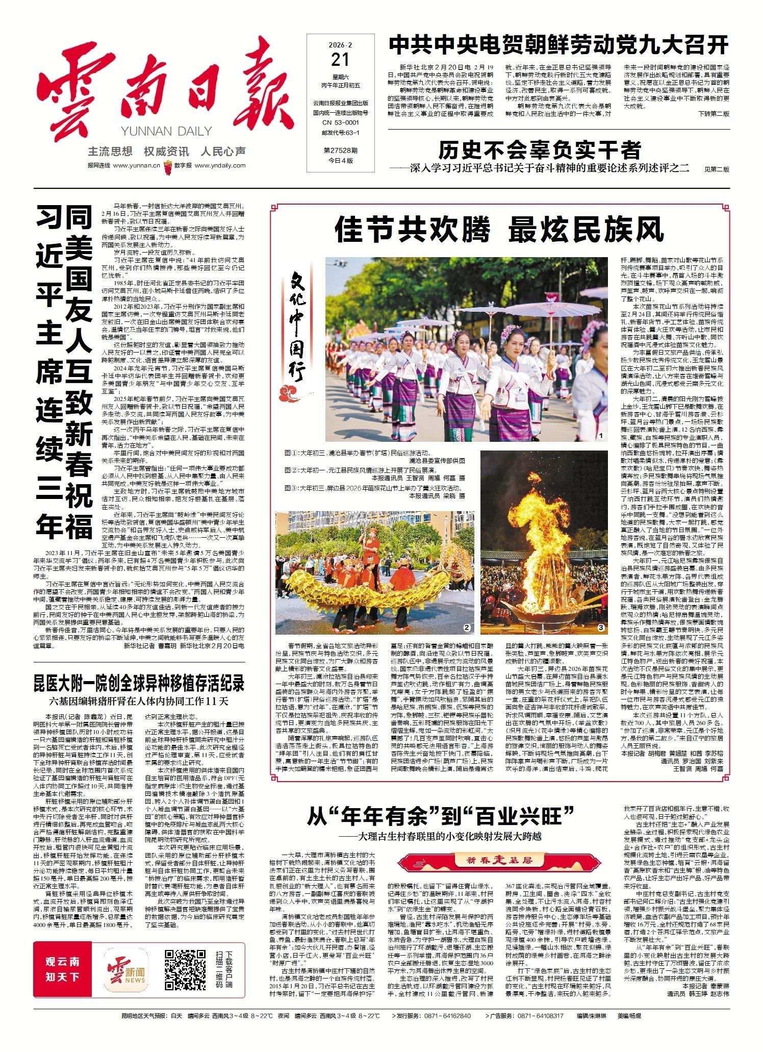 这个春节,红河州以文化为魂、以体验为核,让传统文化在新时代绽放新光彩。全州图书馆、文化馆、博物馆、非遗馆等,成为市民游客新春文化体验的重要场所。建水古城龙狮巡游锣鼓喧天,朱家花园机器人、机器狗灵动亮相,传统古建与现代科技巧妙融合,解锁沉浸式年味新体验;石屏古城街巷龙狮舞动,博物馆猜灯谜、拓片体验人气爆棚,非遗民俗年味十足;弥勒可邑小镇阿细跳月、彝家婚俗等12项特色民俗轮番上演,民族风情浓郁醉人;元阳哈尼梯田畔,哈尼服饰体验、长街宴品鉴等活动,让游客在千年农耕文明中感受别样新春;屏边、河口、金平、蒙自等地苗族花山节盛况空前,爬花杆、斗牛、芦笙舞、篝火晚会热闹非凡,各族同胞载歌载舞,共谱民族团结新春乐章,文化传承在红河山水间生生不息。