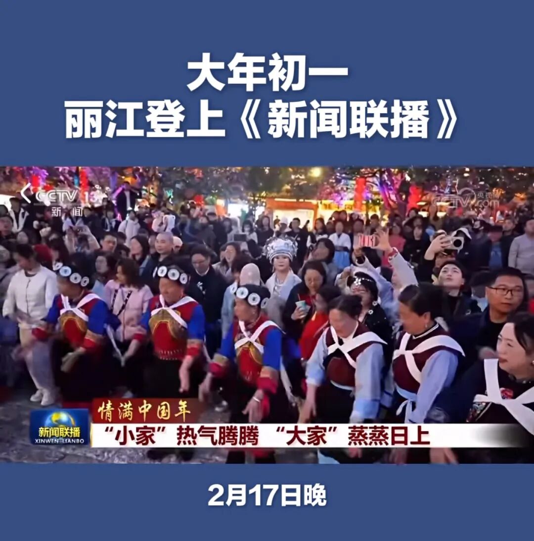 春节假期,丽江多次亮相国家级媒体平台。大年初一、初二连续两次登上《新闻联播》,央视新闻频道两次聚焦丽江古城保护与发展;央视网“热气腾腾的中国年”宣传丽江花卉产业;人民日报头版关注“丽江古城在保护中发展”,客户端报道“旅居云南,来丽江过大年”。