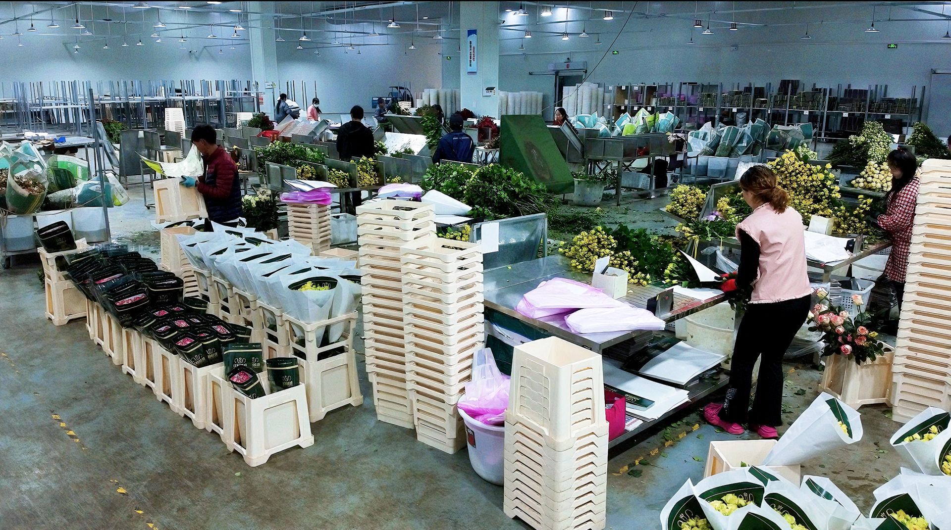数十公里外,大庄镇柏子村的双柏县植盛农业有限公司数字花卉产业园,同样一派繁忙景象。连片智能温室大棚内,各色鲜花竞相绽放,工人们穿梭其间,进行采摘、修剪、分级、包装,一束束高品质鲜切花经冷链物流发往全国各地,并远销海外市场。“我在这里务工两年多了,收入稳定。”工人柏向芝笑着说,“春节加班有三倍工资,在家门口就业既能照顾家人,又能增加收入,日子越过越红火。”复工复产以来,园区第一时间组织本地群众返岗就业,400余名工人有序上岗,日均产出鲜切花8至10万枝。车间主任舒明磊介绍:“我们正月初四就开始复工,目前大部分员工已经返岗。冬季花卉品质好、订单多,出口和国内销售都不错。春节前后是销售黄金期,我们正全力保障生产和发运。”随着妇女节等消费节点临近,企业订单量持续增长。数字化管理、标准化生产与稳定的市场渠道,让“美丽产业”焕发勃勃生机,也带动周边群众实现稳定增收。