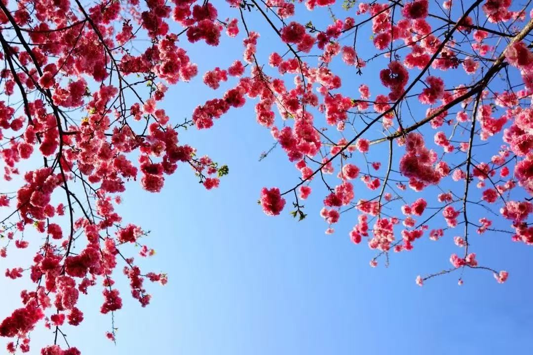 花开满树,粉色的花朵如云似霞,煞是好看。抬头仰望,樱花与蓝天相辉映,点缀了这曼妙的春日。