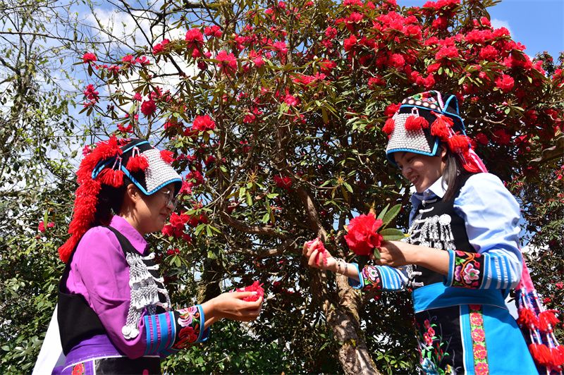 暖阳春风里,双柏白竹山的马缨花盛放,漫步在蜿蜒绵长的山路上,头顶是蓝天白云,近处是开得热烈的春日百花,远处是红绿交织的山峦,确为春日里的一大乐事。