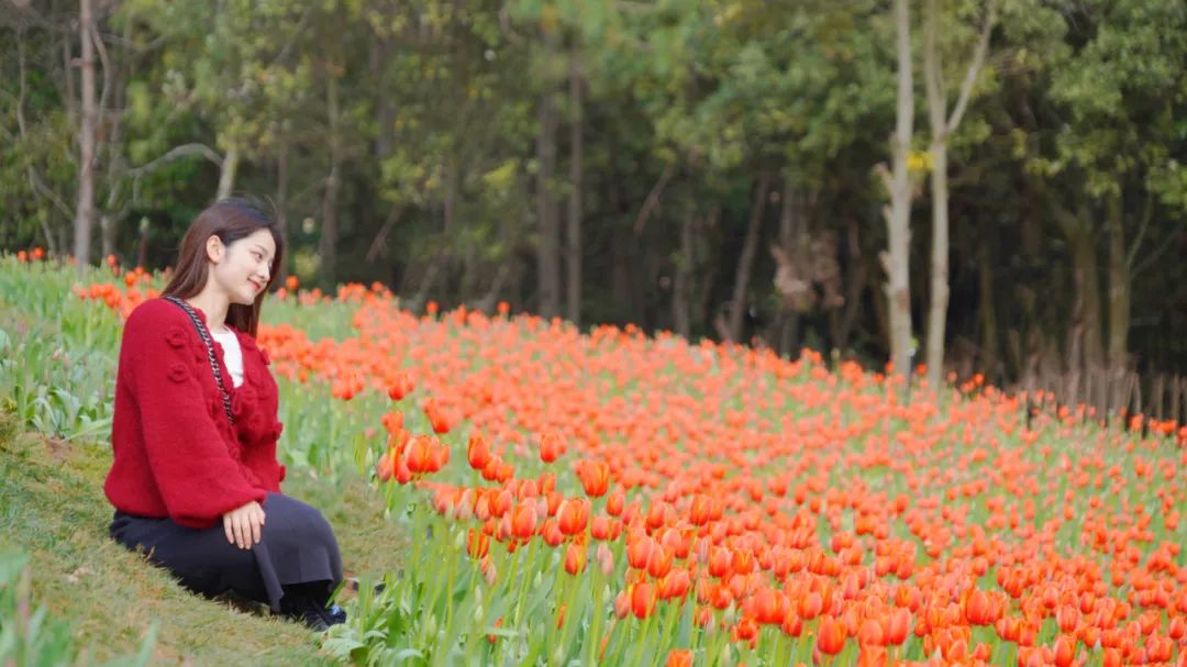 漫山遍野的郁金香开得肆意张扬,热烈的春日气息扑面而来,似在举行一场盛大的春日狂欢。