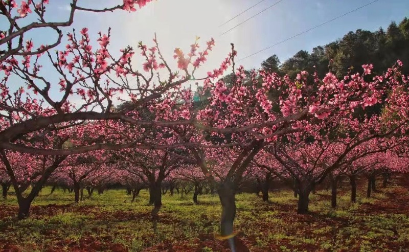 禄丰市土官镇乌龙潭村,位于昆明市与楚雄州接合部的昆楚高速公路(三合邑出口)和320国道上,距昆明约70公里,全村家家户户种桃,连片的桃园上千亩。每年春天,山麓上桃花盛开,美不胜收。