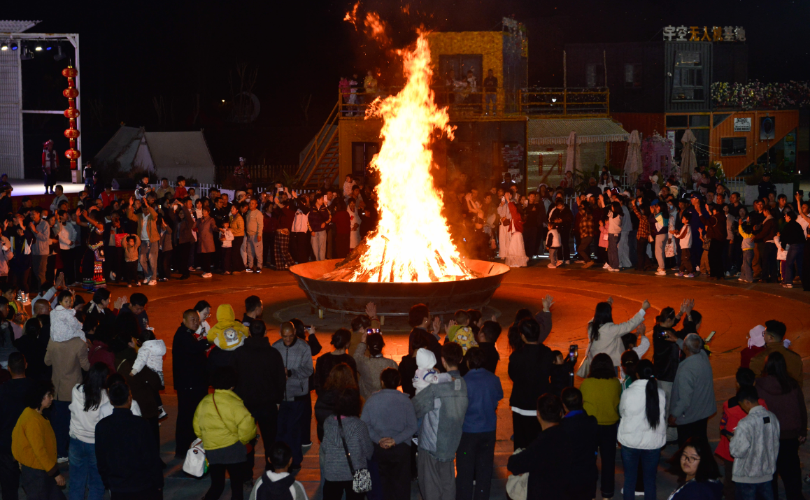 作为活动主场地,鲜花童话文旅城化身欢乐海洋。佤族甩发舞、火舞秀轮番上演,篝火打跳环节中,居民与游客手拉手踏歌起舞,以文旅为纽带促进各民族交往交流交融,生动诠释“薪火相传·民族同心”的美好寓意。