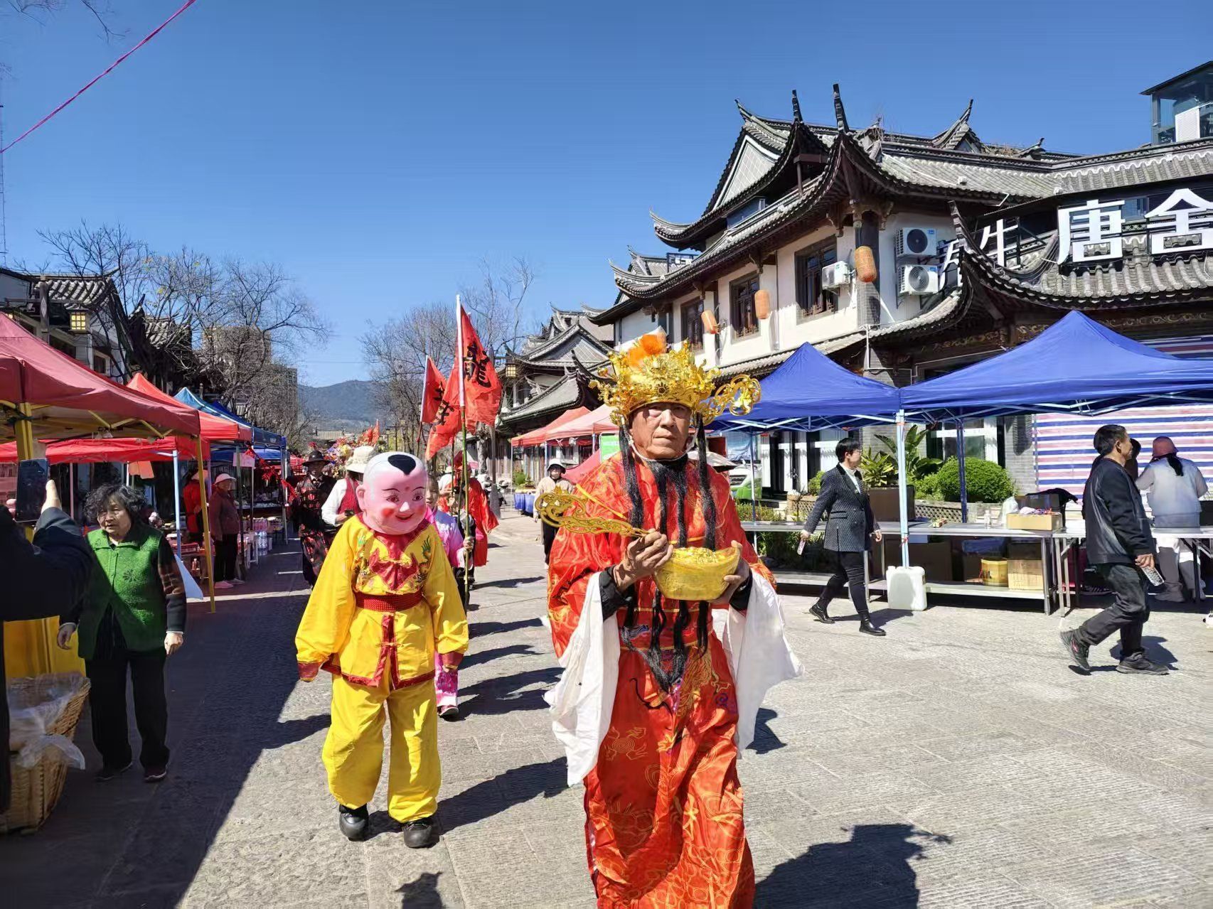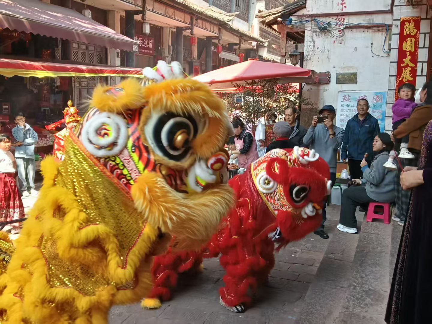 而千年盐都黑井古镇也年味浓郁、热闹非凡。舞狮队、民俗文艺队沿街开展新春民俗巡游,与各族游客互动送福,在欢声笑语中加深彼此了解,共同感受地方传统民俗的独特魅力。禄丰皮影戏、川剧变脸等地方戏曲集中展演,让游客近距离领略中华优秀传统文化的博大精深,进一步增进对多元文化的认同。