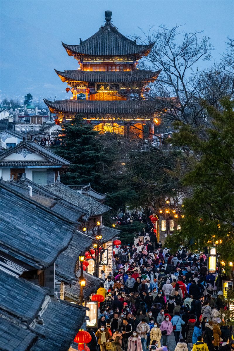 (春节期间丽江古城游客再创新高 丽江市文化和旅游局 图)