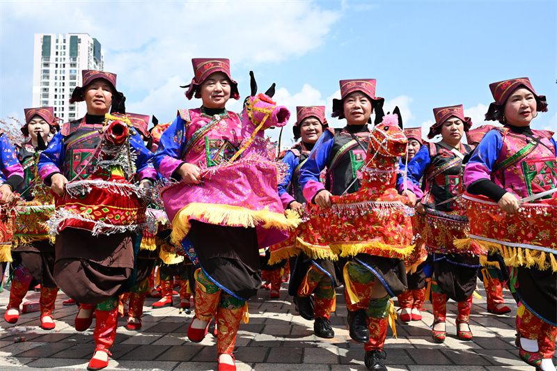 (文山纸马舞贺马年新春 熊平祥 摄)