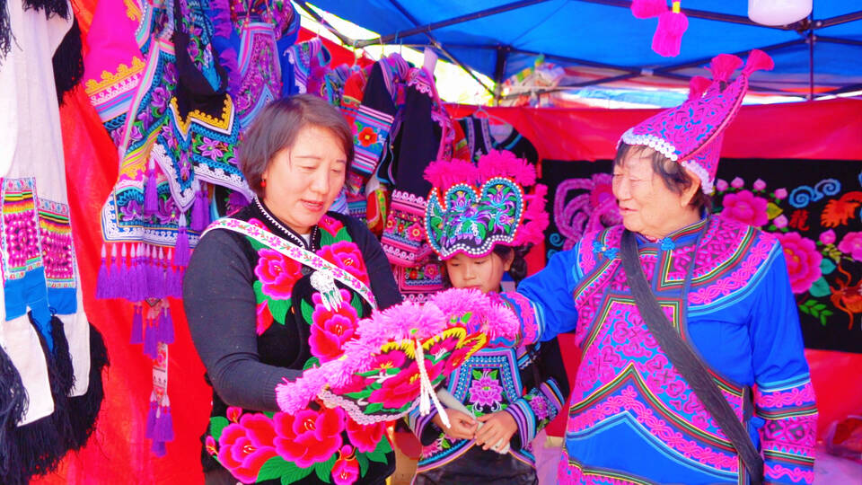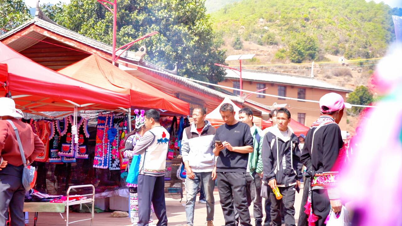 羊皮褂披在身上,绣片装进行囊。王晓红带走的不仅是一份来自直苴的礼物,更是对彝绣文化的深刻记忆。像她这样的游客,每年正月十五都有成千上万。直苴赛装的声名远播,让越来越多的人走进这片大山,也让大山里的手艺走向了更广阔的天地。
