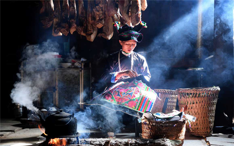各民族文化交相辉映,节庆不断,诗意盎然。壮族“三月三”,山歌四起,绣球传情,花米饭五色斑斓,香气四溢;苗族花山节,盛装云集,爬花杆、跳芦笙,热闹非凡;彝族花脸节,抹花脸送祝福,篝火熊熊,歌舞不停。壮锦纹样精美,苗绣针法细腻,白族花灯婉转悠扬,瑶族服饰独具韵味,每一项技艺、每一种民俗,都是活态的文化瑰宝。