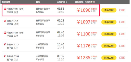 从行程看,北京至昆明出发时查询的往返机票价格最低为1090元。