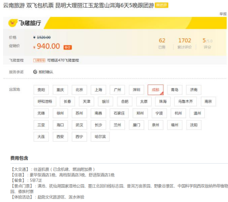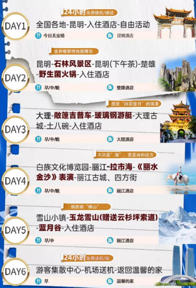 该旅游产品广告链接:云南旅游 双飞包机票 昆明大理丽江玉龙雪山洱海6天5晚跟团游