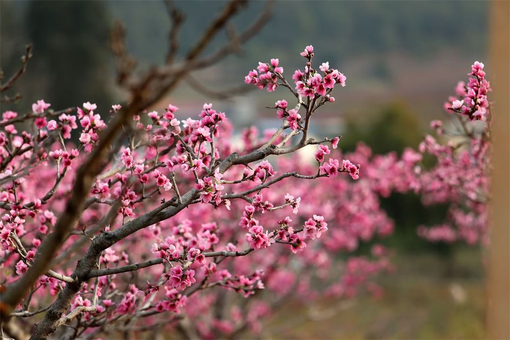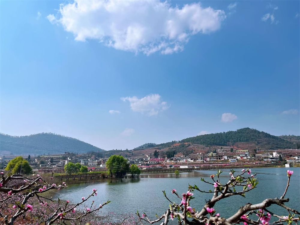 阳春三月,禄丰市土官镇乌龙潭万亩桃园化作粉色海洋。