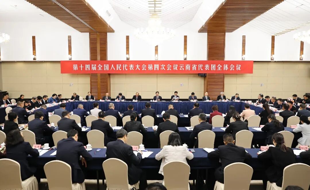 (3月6日,出席十四届全国人大四次会议的云南省代表团举行全体会议和小组会议,审议政府工作报告、审查“十五五”规划纲要草案。)