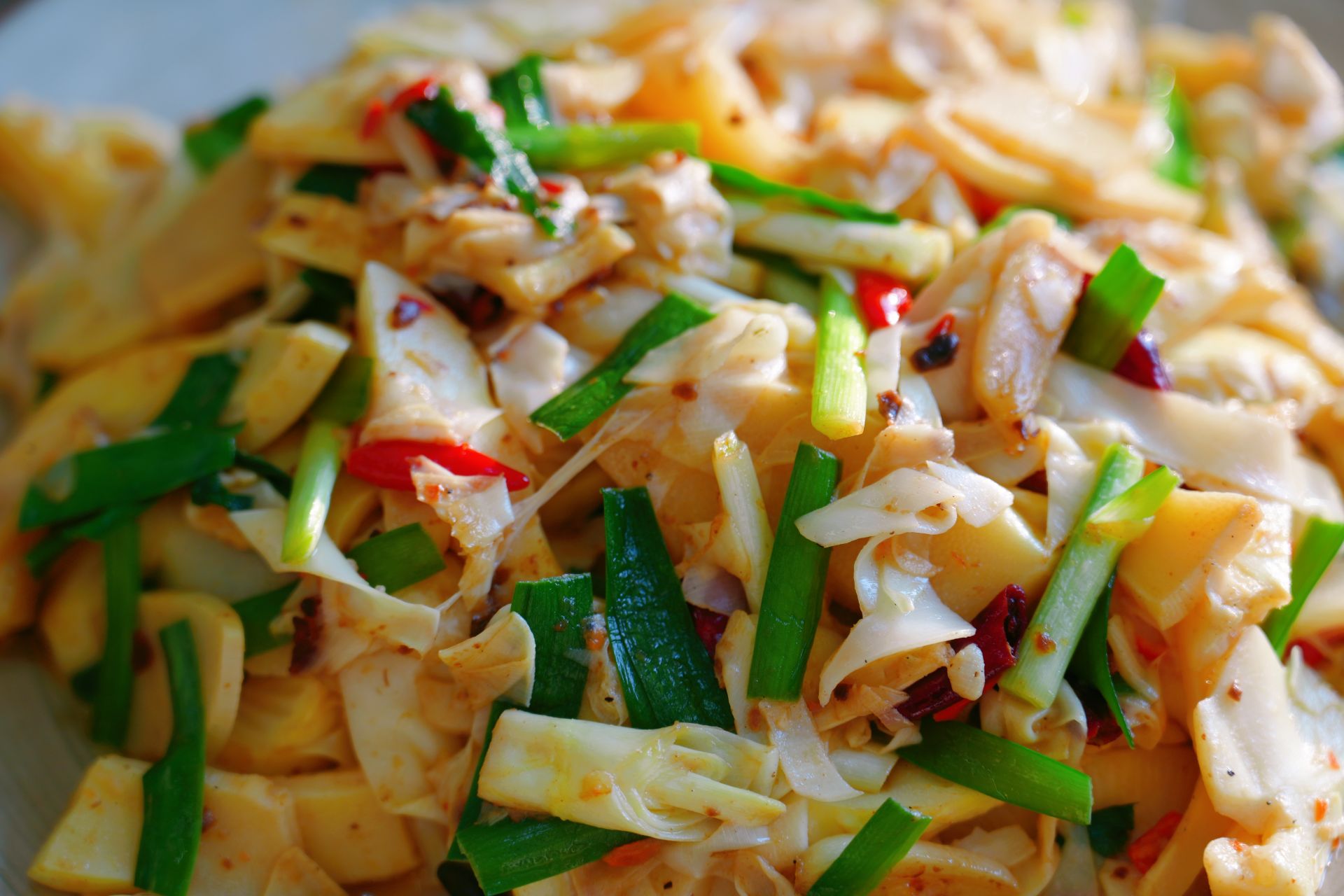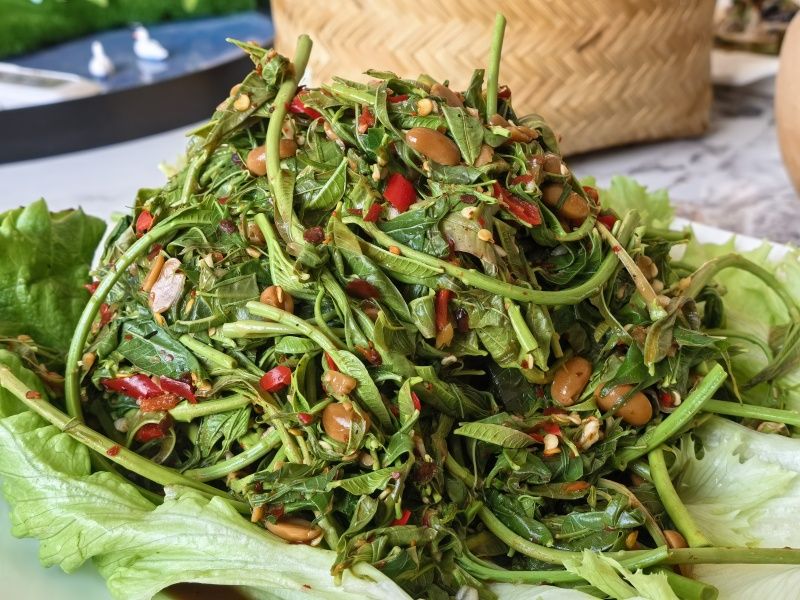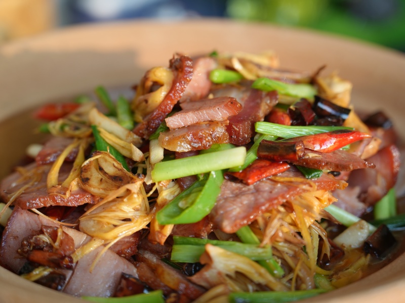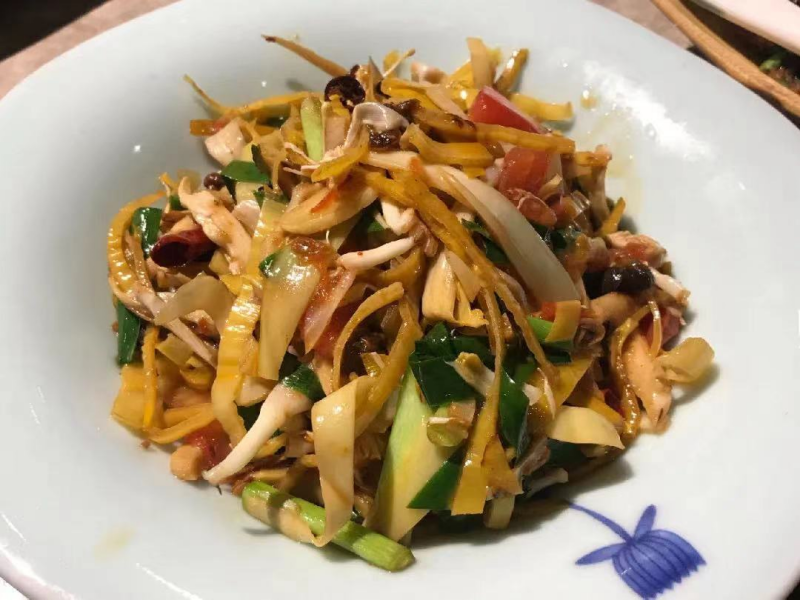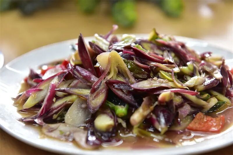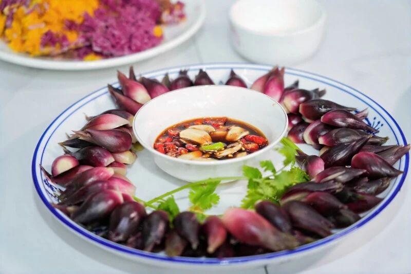 芭蕉花经揉搓去苦,与腊肉同炒,香糯入味,透着红河人家的烟火气。