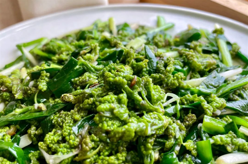 棠梨花要焯水去涩,或清炒,或炒腊肉,脆嫩回甘,是下饭的好搭档。