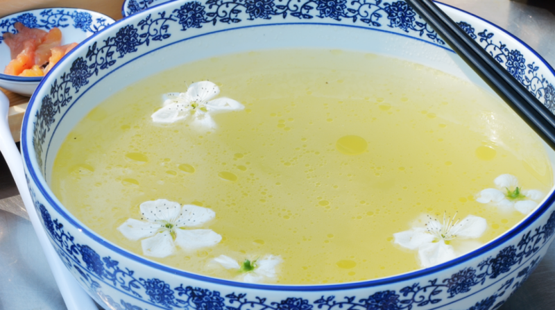 鲜美的汤底里,加入几朵洁白的梨花,高汤的鲜甜与梨花的清香完美融合,这是与春天的一场美味约定。