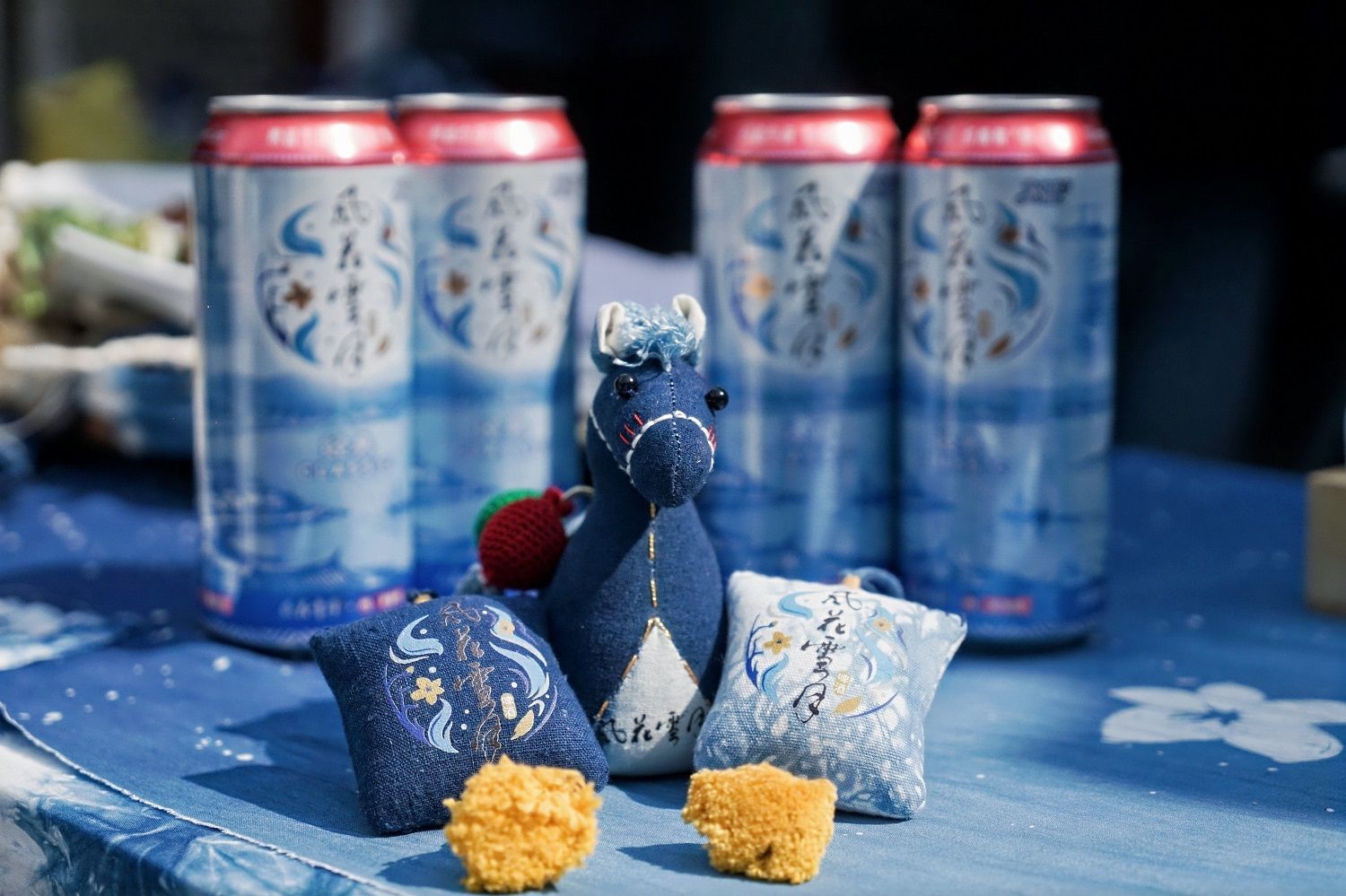 白族扎染是传承千年的非遗技艺,在云南地区拥有深厚文化积淀。此次风花雪月啤酒与张翰敏女士跨界合作,以非遗扎染为创意载体、以“风花雪月”意象为自然灵感,共创“织蓝生花”艺术长卷,并将扎染纹样融入罐身设计,推出限定风景扎染罐产品。
