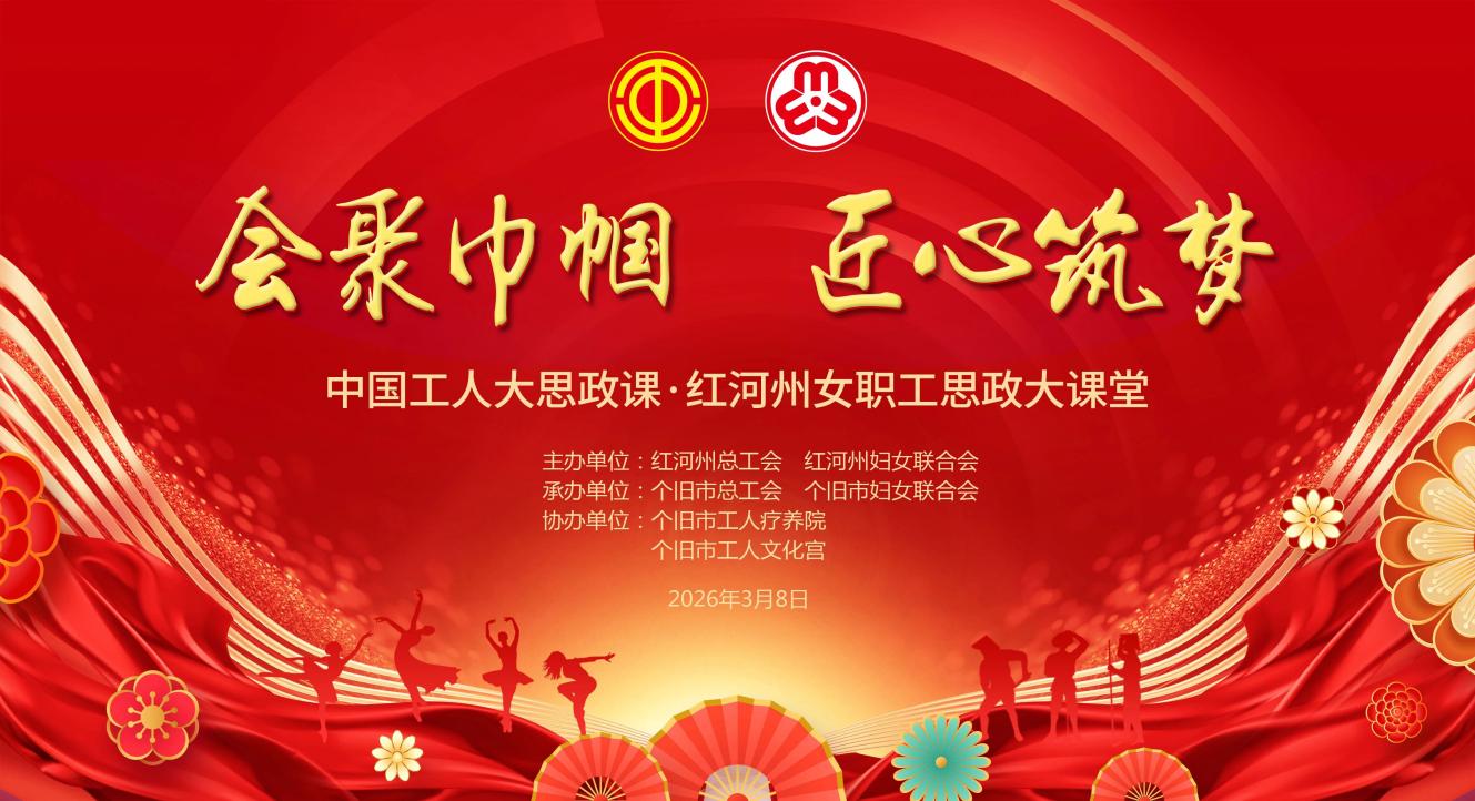 3月8日,由红河州总工会、红河州妇女联合会主办,个旧市总工会、个旧市妇女联合会承办的2026年“会聚巾帼·匠心筑梦”中国工人大思政课·红河州女职工思政大课堂活动在个旧市工人疗养院举行。来自全州各行各业的150余名女职工代表齐聚一堂,在思想淬炼与榜样引领中汲取奋进力量。