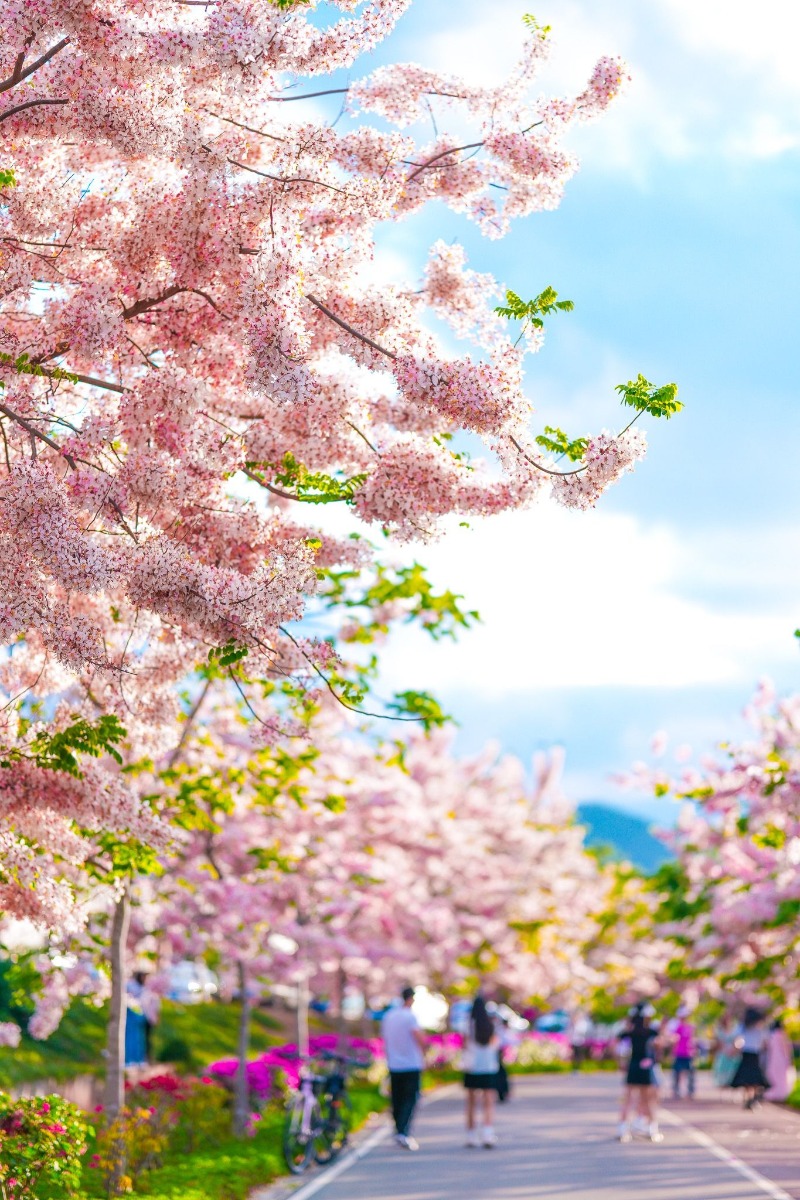 浪堤樱花谷的粉艳