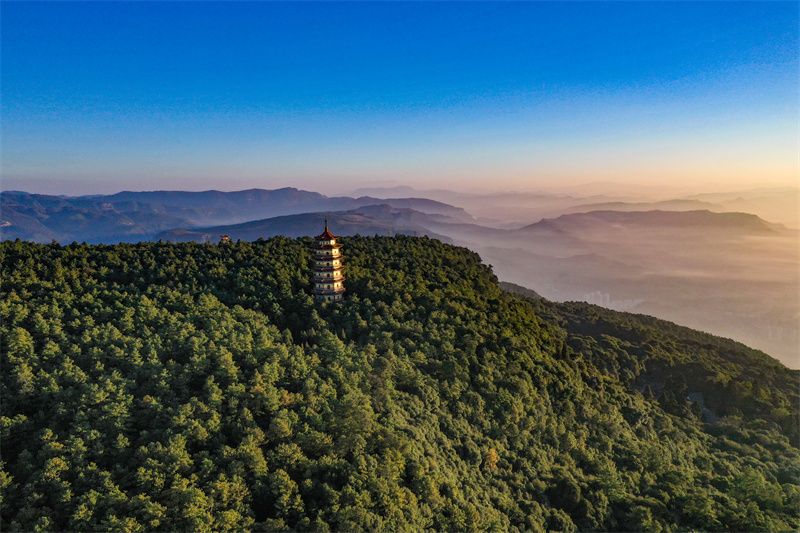 狮子山因山形如卧狮而得名,这里森林覆盖率极高,每一步都能呼吸到清新的空气。