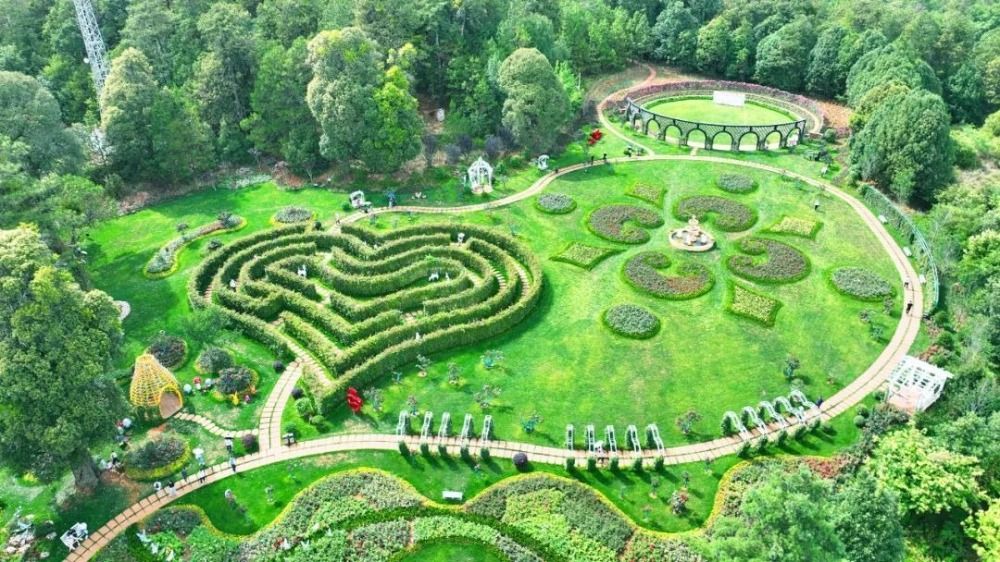 这里森林覆盖率高达95%,漫步景区,绚烂的花海与苍翠的森林交织成一幅天然的油画。沁凉的微风裹挟着花香拂面而来,每一步都踏在斑驳的树影与落英之间。