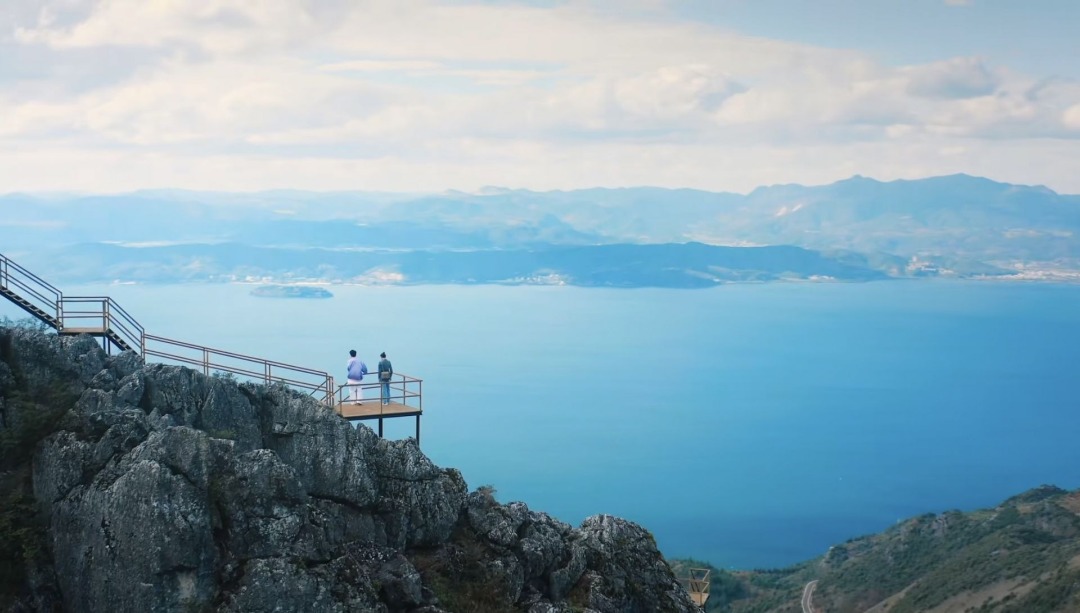 而在华宁,磨豆山正以另一种风情等待着你。磨豆山山顶平坦宽阔,云雾缭绕,可同时俯瞰抚仙湖、星云湖、杞麓湖三大高原湖泊。最令人惊艳的,是那如同身处新西兰的田园风光:蓝天白云下,成片的风车在山脊上缓缓旋转,草甸上牛羊成群,山峦错落有致。这里也是露营爱好者的天堂,夜晚观星,清晨看日出云海,让人流连忘返。