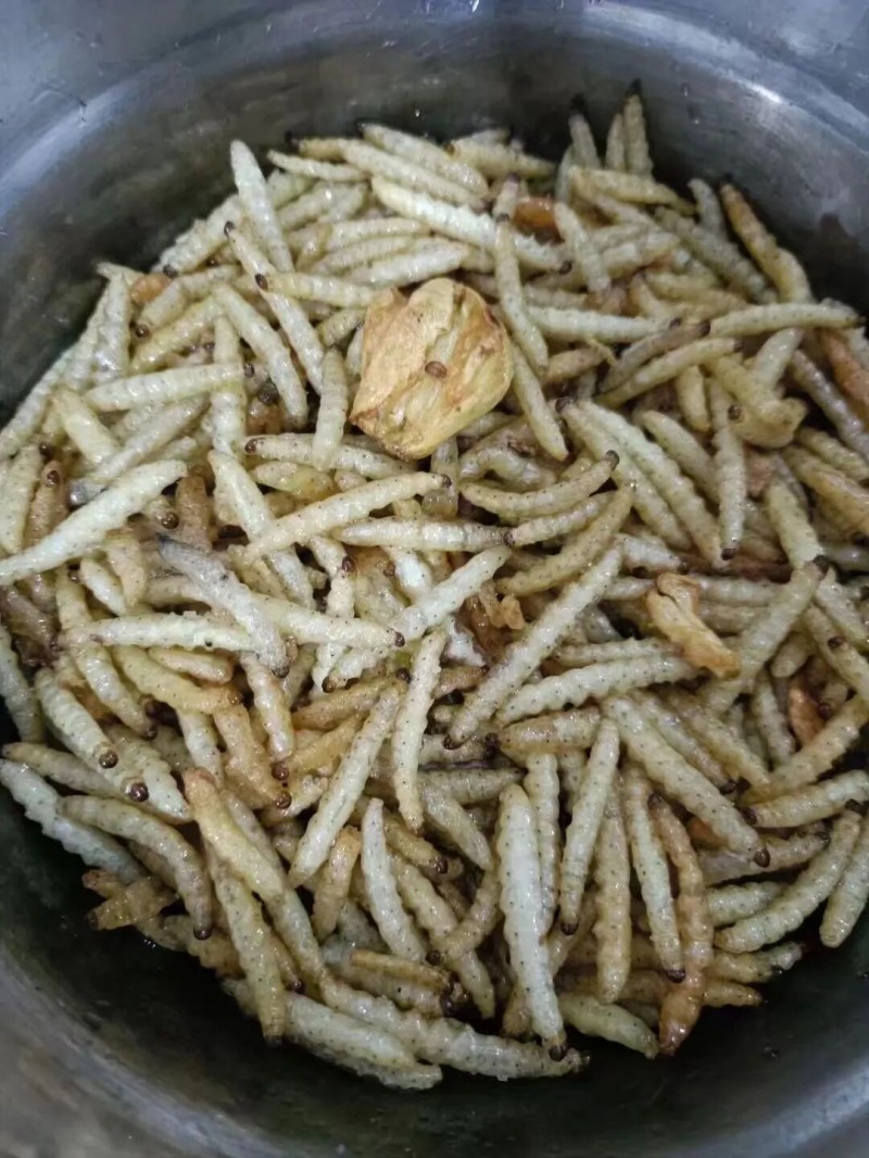 无论是马蜂蛹还是蜜蜂蛹,都是不可多得的美味。油炸蜂蛹最经典,蛹体炸至金黄,撒少许盐,香酥可口。也可与鸡蛋同蒸,嫩滑鲜美。