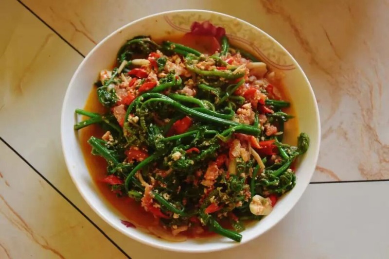 春天的蕨菜最是鲜嫩。采摘顶端蜷曲的嫩芽,焯水去涩,可凉拌、可炒腊肉、可煮汤。最简单的吃法是焯水后蘸胡辣椒蘸水,原汁原味的山野气息。