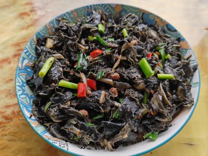 长在树干上的苔藓状植物,泡发后凉拌最佳。加醋、酱油、蒜末、辣椒油,酸辣脆爽,是普洱人餐桌上的开胃小菜。