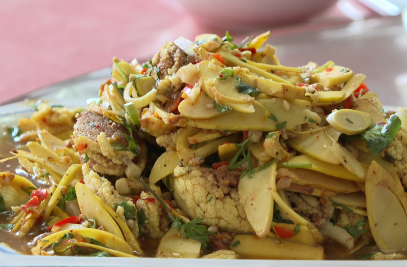 藏在棕榈树深处的“宝藏”,形似鱼籽。剥去外层硬壳,露出嫩黄的花穗。可炒可煮,最经典的吃法是棕榈花与土鸡一同炖煮,汤味清甜;也可棕榈花炒肉片,脆嫩鲜美,被称为“树上蔬菜”。