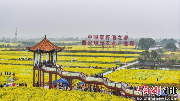 清凌凌的汉江水与古老神韵的楚简热情相拥,热烈欢快的歌曲《在希望的田野上》唱响万亩花海。3月18日上午,2026年湖北省油菜花节在荆门市沙洋县曾集镇张池村盛大开幕。当日,八方游客踏春而来,共赴这场荆楚春日的金色盛宴。(来源:中国新闻网)