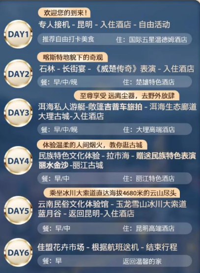 该旅游产品广告链接:【含机票住五钻】头等舱昆明石林大理丽江6天旅拍双表演云南旅游